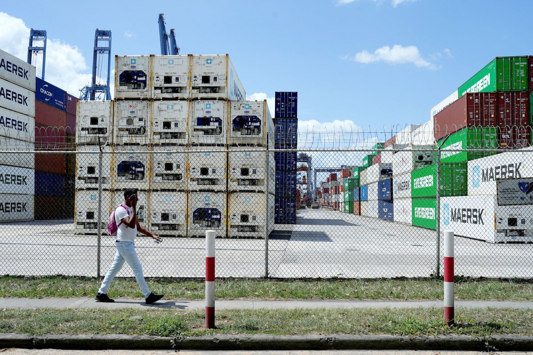 Muž u vstupu do přístavu Balboa po změně vlastnictví. Prodej přístavu má geopolitické důsledky.